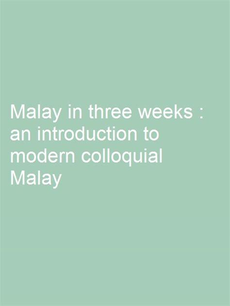File Name: Malay In Three Weeks.pdf Size: 7016 KB Type: PDF, ePub, eBook |